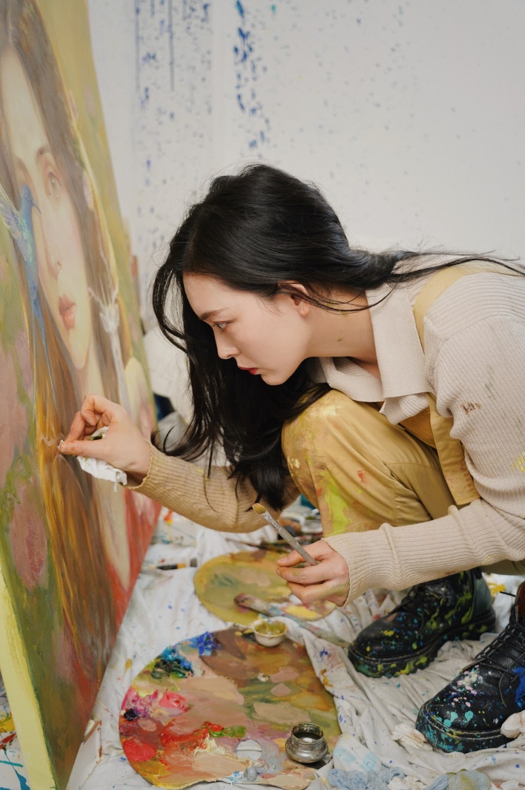 Zhao Xiaoli, artista visual e criadora de conteúdo, em seu ateliê.
