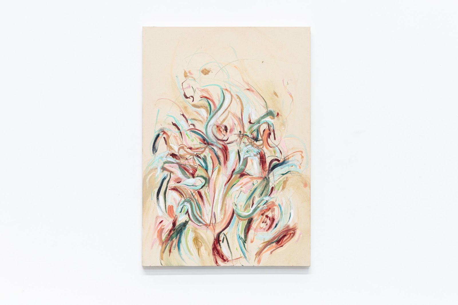 Na época ela ainda não sabia, mas os oito anos de balé na infância lhe deram uma enorme consciência corporal e a ensinaram a perceber seus movimentos como linguagem - aprendizados esses que, mais tarde, transpareceram em suas telas gestuais. O primeiro contato com a pintura aconteceu ainda na escola, quando um professor de artes a incentivou a fazer autorretratos em grande escala, baseados em fotografias. A experiência foi marcante o suficiente para inspirá-la a seguir carreira criativa, mas por outro caminho, ingressando em uma faculdade de moda, que não chegou a concluir. Esse período de transição acabou gerando um intervalo de sete anos, entre 2008 e 2015, longe dos pincéis. Foi somente quando entrou na faculdade de artes que pintar voltou a fazer parte de sua vida.
