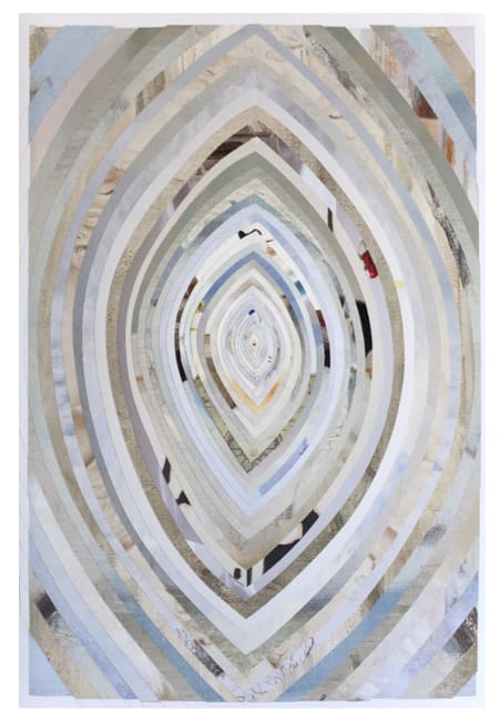 De um lado, a obra “O livro dos dias”: um diário sem narrativa linear. Uma colagem  analógica, feita de sucessivas camadas em formas ovais. É no modo como essas imagens se acumulam e se sobrepõem que se constrói o sentido do trabalho. Do outro, “A longa noite”, uma segunda obra que, apesar de apresentar a mesma estrutura formal, mergulha em uma paleta mais densa, profunda e cósmica. Nesta, as imagens revelam fragmentos de céus estrelados, nebulosas e galáxias.