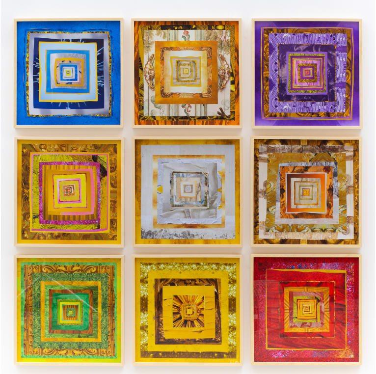Os títulos fazem referência ao período da pandemia, quando essas as obras foram feitas. Foi nesse momento, por isolamento social, que o artista passou a trabalhar com colagens analógicas, uma novidade em seu trabalho.