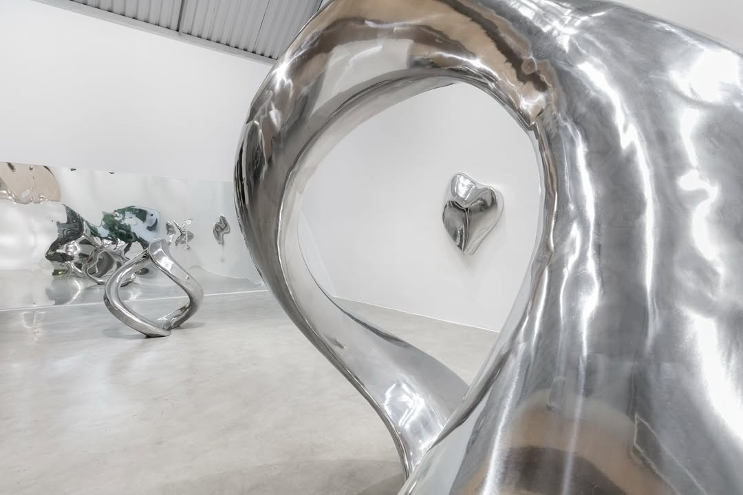 Já a exposição de Rizza, “Gesto Paramétrico”, apresentou obras que introduziram a presença humana por meio do reflexo de suas superfícies – que, por sua vez, despertaram a percepção do corpo do público no espaço. As obras de Rizza também não devolvem imagens nítidas, ao contrário, dobram paredes e objetos, distorcem corpos, embaralham o dentro e o fora. Não há distinção entre o que pertence à obra e o que lhe é externo. O entorno, as pessoas, a arquitetura, tudo integrado e complementar às formas.